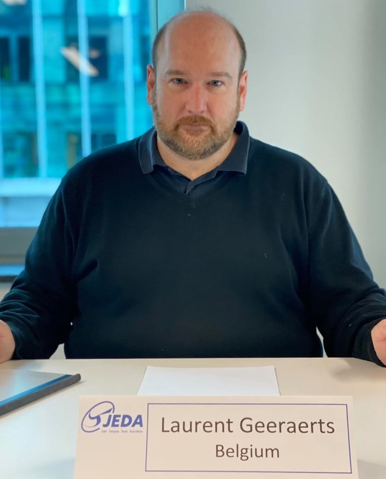 Treasurer of JEDA since 2022, Laurent Geeraerts is Head of Training at Noordzee Drones in Belgium and a board member of the Belgian Drone Federation (BDF).